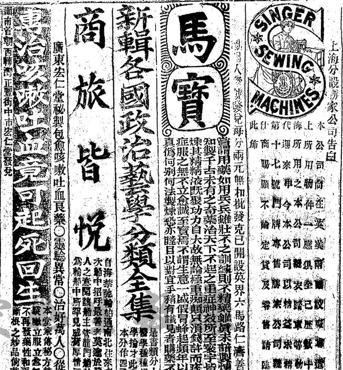 1902年4月2日《申报》刊出胜家公司在沪开始分公司的告示