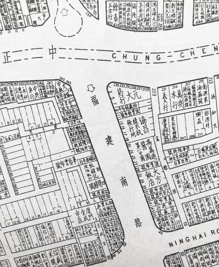 1947年《老上海百业指南》行号图中还可以在福建南路两侧看到“协昌缝纫机发行所”“阮耀记缝纫机行”“茂昌缝纫机”等店铺