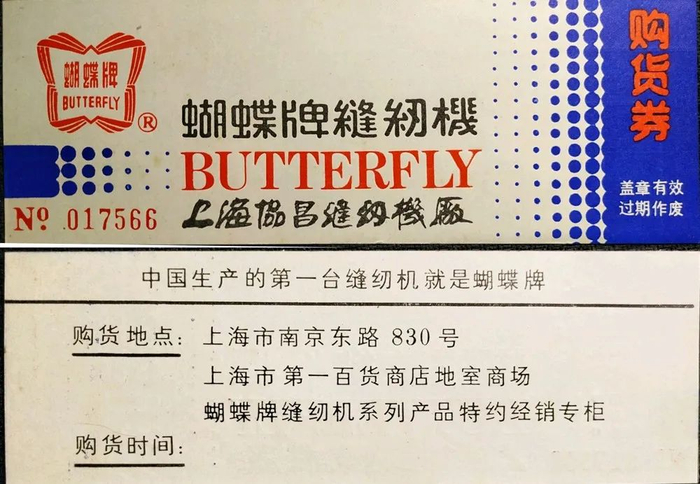 20世纪70年代末发行的“蝴蝶牌”缝纫机购货券