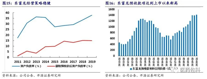 公司执行订单采用预收款制度,平均比例约为 30%左右。根据项目不同的工艺与技术,收到预收款后平均验收周期为半年至一年半不等;从历史上看预收款项是公司业绩的先行指标,公司预收款项在 2017 年 Q1 见底后持续上升,20201年 Q1 达到上市以来新高,表明公司在手订单充足,参考历史经验,我们认为公司即将迎来新的一轮业绩释放期。公司无菌注射剂设备及整体解决方案受益于注射剂一致性评价持续推进,近年来新推出的生物类、原料药类和消毒类产品前景广阔,放量在即。