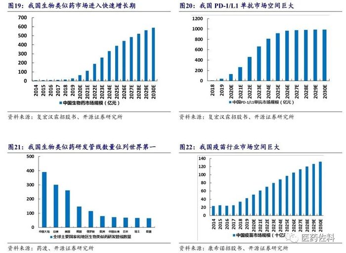 近年来我国已有复宏汉霖的利妥昔单抗、百奥泰和海正博锐的阿达木单抗等生物类似药陆续上市,众多生物类似药处于不同临床阶段,随着在研生物类似药陆续上市,我国生物类似药市场将进入快速成长期。在生物创新药方面,以 PD-1/L1 单抗为例,目前已有恒瑞医药的卡瑞利珠单抗、信达生物的信迪利单抗、君实生物的特瑞普利单抗和百济神州的替雷利珠单抗 4 个国产 PD-1/L1 单抗上市,多个品种处于不同临床阶段,未来市场空间巨大。单抗等生物药的生产需要生物发酵罐及反应器等,公司此前已经为国内外多个生物药企业的 PD-1 单抗、ADC 药物、疫苗等的生产提供从核心工艺系统/设备到系统工程整体解决方案等一系列服务,随着生物药市场扩容,公司相关产品如生物发酵罐和反应器、生物分离纯化及超滤系统等有望快速增长。