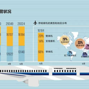 至少在5月底,全球民航业还没有成规模复工的迹象。欧美民航市场每日载客量仅为去年同期的5%左右。2月时,全球2.9万余架民航客机中,有2.5万架在正常服役。到3月,只剩1.3万架客机在运营,超过1.5万架客机在世界各地停场。而4月和5月的停场客机数,较3月又增加了几百架。