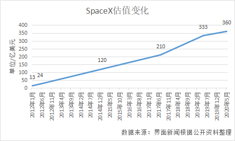直到2008年,SpaceX与NASA签订价值16亿的合同,并将货物成功送入国际空间站。SpaceX才迎来了Founders Fund的第一笔外部投资。自此之后,随着SpaceX在技术和订单上的不断突破,SpaceX的融资的估值也呈现水涨船高的趋势。