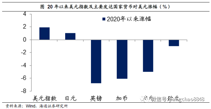 而美元的升值主要源于疫情冲击带来了全球避险情绪的升温,美元作为全球储备货币从中受益。例如在08年金融危机期间,我们同样曾观察到美元的短期大幅升值。