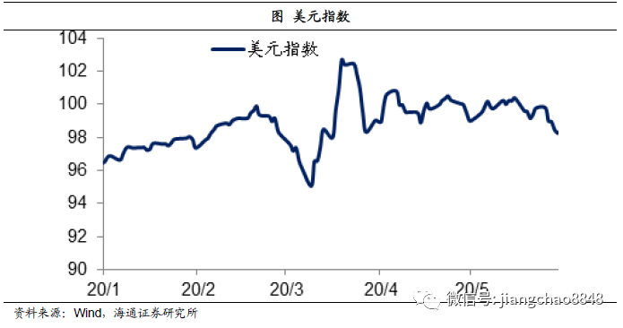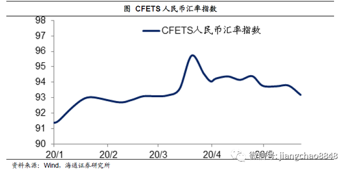 从美国宣布超级宽松的货币政策以来,美元指数已经从3月19日最高的103重新贬至5月末的98.26。因此,如果美元的升值不可持续,那么人民币对美元也不会持续走弱。