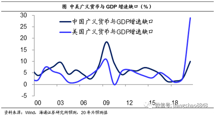 其实货币超发是全球现象,例如美国今年的广义货币增速或高出GDP增速约30%,欧元区的广义货币增速也将高出GDP增速10%以上,其货币超发程度远甚于中国。