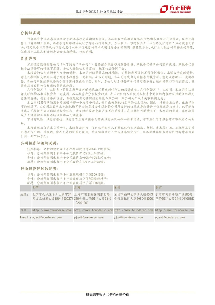 我们此前报告曾指出, 2020 年是国产存储芯片关键年, 国产存储芯片产能扩张带动国产设备采购需求增长。中芯国际、 华虹集团先进逻辑制程突破, 预计未来设备资本开支持续增加。国内 MEMS产线、 功率半导体等领域, 今年亦迎来投产及产能扩张。先进封装、 新型显示、 光伏产业、 Mini/Micro LED、 宽禁带半导体等方向国产投入持续高景气。我们预计半导体设备订单的高景气有望持续, 即公司 BB 值有望持续保持在较高水平。