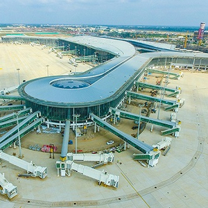 2020年4月15日,高空俯瞰海口美兰国际机场二期扩建项目。图片来源:人民视觉