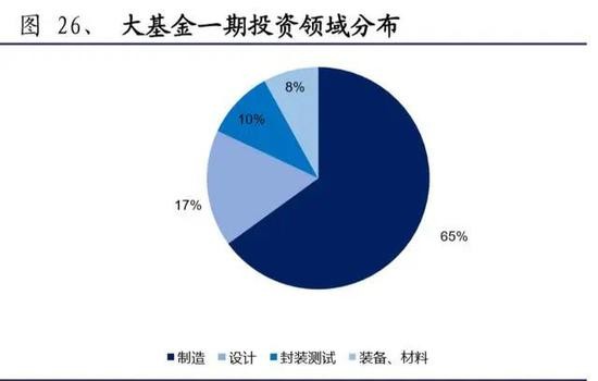 “国家集成电路产业投资基金”(简称“大基金”)是由中央财政、国开金融等共 同发起,为促进我国集成电路产业发展而设立的产业投资基金。大基金通过股权 投资、联合设立基金等方式,加强对集成电路制造和装备、材料等短板薄弱领域 的投资。大基金对于芯片制造业的投资比例,不低于总额度的 60%(其中芯片制 造业的资金约为 65%、设计业约为 17%、封测业约为 10%、装备材料业约为 8%)。