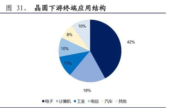 作为半导体材料中成本占比最高的材料,晶圆全球销售额超120亿美元。据SEMI, 2019 年硅片的销售额在全球半导体制造材料行业当中的占比高达 37%。晶圆下游 应用主要为电子、计算机、工业等领域,占比分别为 42%、19%、11%。受半导 体市场规模不断扩大拉动,全球晶圆材料市场规模从 2008 年的约 79 亿美元增长 超40%到2018年近120亿美元。后续半导体在汽车、工业等领域的需求不断增长, 晶圆材料的需求还将保持增长。