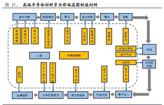(2)技术密集:半导体材料生产涉及切割、研磨、刻蚀、激光打码、化学机械抛 光、光刻、显影、溅射、沉积、纯化等诸多先进工艺,对先进工艺有很高要求。