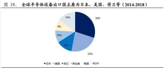 反观美国、日本等国家或地区,产业主要集中于半导体产业链高附加值的环节, 如 IC 设计、半导体前端制造等。美国半导体行业产值高达 2090 亿美金(2018年), 半导体产业也是美国第四大出口产业(排在飞机、石油产品、原油之后)。日本则 是全球最大的半导体设备出口国, 2014-2018 累计出口了约 930 亿美元的半导体设 备。