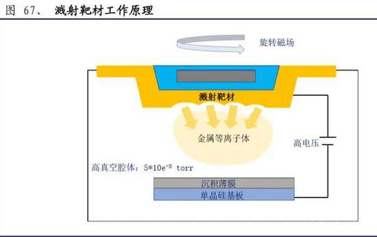 溅射工艺是在制备超大规模集成电路的过程中一种需要反复应用的工艺,属于物 理气相沉积技术的一种,主要利用离子源产生的离子,在高真空中经过加速聚集 形成离子束流,轰击固体表面,离子和固体表面原子发生动能交换,使固体表面 的原子离开固体并沉积在基底表面。被轰击的固体是用溅射法沉积薄膜的原材料, 称为溅射靶材。一般来说,溅射靶材由靶胚、背板等部分构成。靶胚主要是各类 高纯金属或合金等,而背板主要在机台内部高电压、高真空环境中起固定及传导 作用。