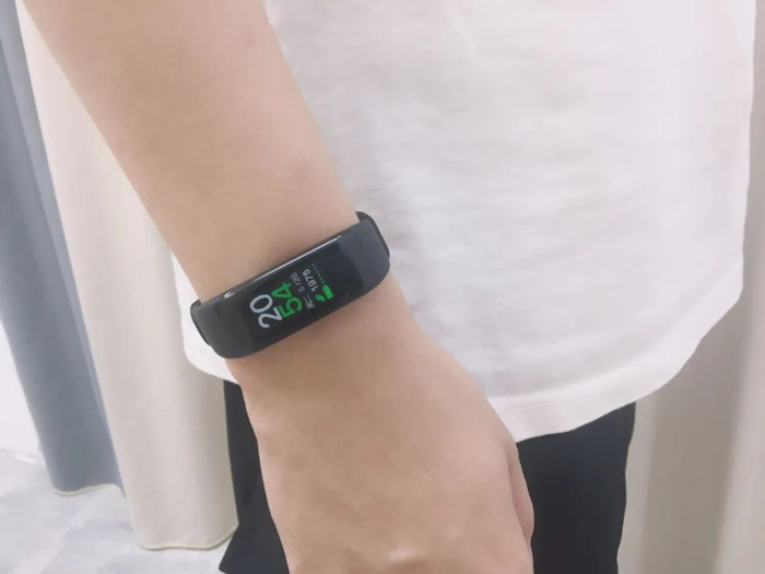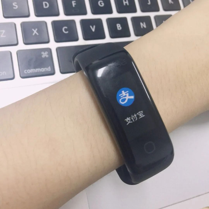 轻触屏幕或者抬一下腕就能点亮屏幕。手上有东西的时候只需要腾出一根手指点一下手环屏幕上的支付宝就行了。