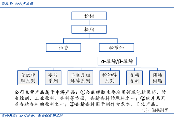 松节油的深加工产品属于产业链中游的精细化工产品,广泛应用于日化、医药、农药、饲料、纺织、皮革、塑料等化工行业。