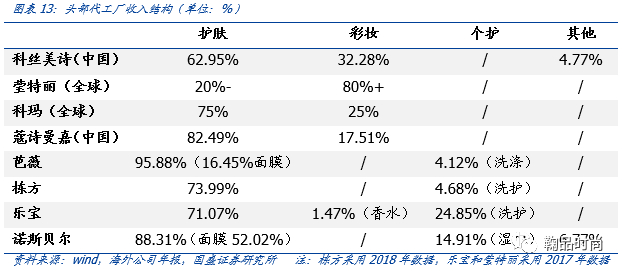 从各公司业务结构来看,外国代工厂在彩妆生产能力上显著强于中国代工厂,科丝美诗/莹特丽/科玛/蔻诗曼嘉分别拥有32%/80%+/25%/18%的彩妆业务收入。