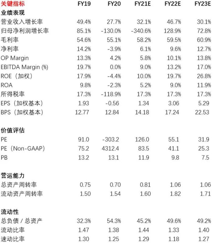 对于好未来的增长空间,我们认为核心是看学而思培优等品牌在二三四线城市的线下开拓与学而思网校的线上扩张速度,盈利水平主要看学而思网校的销售及营销费率变化情况,预计好未来FY21、FY22、FY23营收分别为43.23、63.40、82.51亿美元,分别同比增长32.1%、46.7%、30.1%;归母净利润分别为2.65、6.07、10.49亿美元,Non-GAAP口径下的经调整归母净利润分别为4.00、8.13、13.23亿美元,对应PE分别为83.5、41.1、25.3倍。首次覆盖,给予“买入”评级,目标价73.40美元。