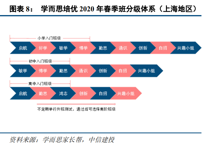 在优质口碑发酵下,学而思培优得以吸引来大量学生报名。学而思培优的课程难度整体而言要高于校本课程,学生在进入补习班之前,需先进行能力测试从而进行因材施教。不同类型的班级教学深度又有所区别:敏学班等基础班知识点讲解更细,以打基础为主;勤思班等高阶班基础内容相对较少,例题培训等难度更高;创新班、集训队等无法直接报名,低级班学员需通过考试后参加培训。