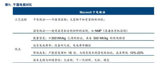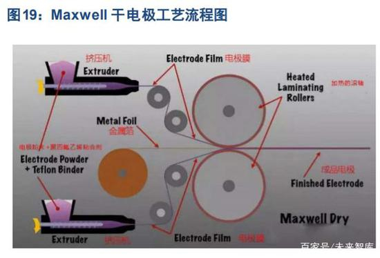 技术与锂电池相得益彰自主“干电极+超级电容”电池技术,有望引领行业。特斯拉和松下自 2009 年开始合作生产世界上能量密度最高的电动车电池, 2018 年开始随着特斯拉全球范围的销售增长,原有电池产能不能跟随需求的步伐,为了突破产能和成本的制约,特斯拉开始在电池技术上发力,2019 年 5 月,特斯拉用 2.18 亿美元溢价 55%收购了 Maxwell,而 Maxwell 在“超级电容”、“干电极”等领域成效显著。2019 年 10 月,特斯拉收购了加拿大电池制造设备和工程技术公司 Hibar,拟将为 Maxwell 生产电池制造设备。2020 年 2 月宁德时代公告称,公司与特斯拉开展业务合作,拟向特斯拉 Model 3 供应锂离子动力电池产品。