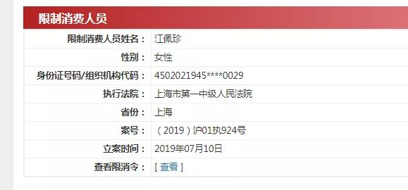 被限制消费后,金嗓子女老板江佩珍又被加上一道“锁”:限制出境