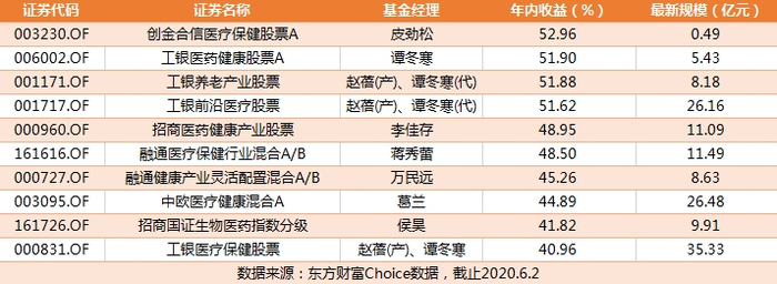中药隶属于医药板块。今年以来,生物医药板块表现突出,即使在近期两市普跌的环境中仍保持强势。受益于此,医药主题基金“霸屏”主动偏股产品收益榜。数据显示,今年前5个月,绝大部分主动型医药基金取得正回报,其中,50只基金业绩涨幅逾30%,在全部主动医药基金中占比过半。