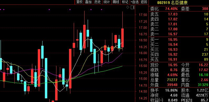 受此影响,名臣健康早盘放量直线飙升,盘中一度上涨近9%,开盘1小时成交量就高达1.03亿元,超过昨日全天的成交量。数据显示,早盘有489万元的主力资金净流入名臣健康。