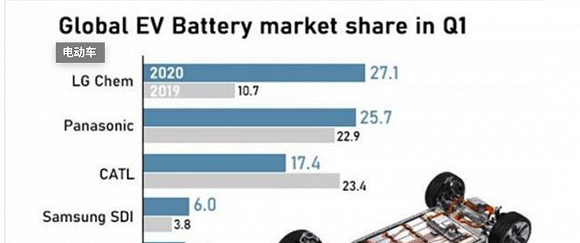 在全球市场上,调研机构SNE Research的最新报告显示,2020年第一季度全球电动车(EV)电池的使用量中,LG化学以27.1%的市场占有率排名第一。