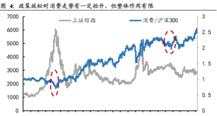 但股价并未体现出来。2007年3月后,全市场处于牛市上涨期,消费板块跑输沪深300。2017年9月,市场处于弱势,消费板块跑赢沪深300,说明地摊经济对消费板块有一定抬升作用,但整体作用有限。