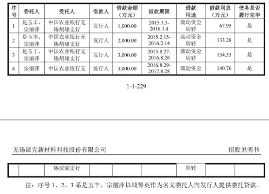 关于委托贷款发生的原因,派克新材表示,钱琴英是公司实际控制人是玉丰的表嫂,实际控制人出于保护个人账户隐私的考虑以钱琴英名义开设银行账户用于理财。由于公司业务发展较快,短期内对流动资金有较大需求,但受限于当时银行信贷收紧以及公司业务规模仍相对较小等原因,公司通过自身实力获取银行贷款支持存在一定的困难,在此背景下,为规范借贷行为,公司实际控制人本着公平、互利的原则向发行人提供委托贷款,帮助缓解公司的流动资金压力。