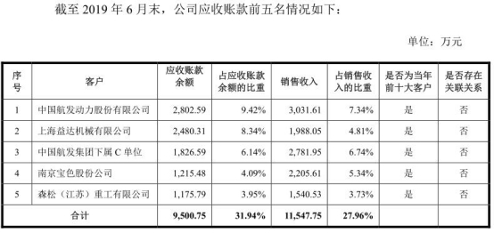 截至2019年6月末,上海益达机械有限公司应收账款余额为2480.31万元,占应收账款余额的比重为8.34%;销售收入为1988.05万元,占销售收入的比重为4.81%。