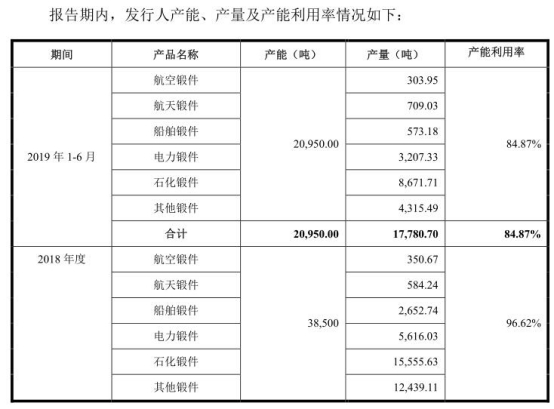 2017年,电力锻件毛利率较2016年上升了4.96个百分点。2018年,电力锻件毛利率较2017年上升8.28个百分点。2019年上半年,电力锻件毛利率较2018年下降8.08个百分点。