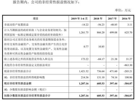 2016年、2017年、2018年、2019年1-6月,派克新材营业外收入分别为682.03万、54.53万元、369.78万元、222.57万元。