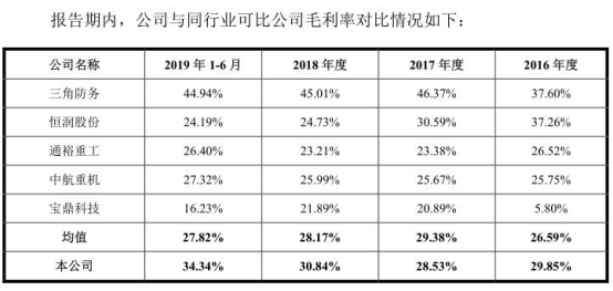 此外,报告期内,行业毛利率均值分别为26.59%、29.38%、28.17%、27.82%。派克新材表示,由于公司与可比公司主营产品结构、市场定位等方面均存在一定差异,导致综合毛利率也各不相同,但从整体来看,公司与同行业可比公司综合毛利率均值不存在重大差异,具有合理性。
