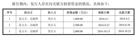 报告期内,派克新材存在向关联方拆借资金的情况。2016年4月1日,拆借金额1800万元。2016年8月22日,拆借金额2500万元。2016年10月13日,拆借金额2000万元。拆出方均为是玉丰、宗丽萍。报告期内,上述拆借资金已全部清偿。