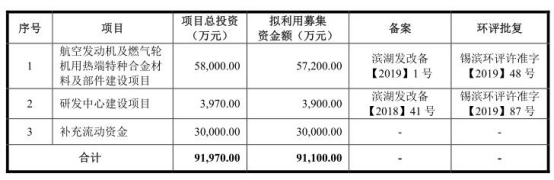 派克新材本次拟使用募集资金金额合计9.11亿元,其中,5.72亿元用于航空发动机及燃气轮机用热端特种合金材料及部件建设项目、3900万元用于研发中心建设项目、3亿元用于补充流动资金。