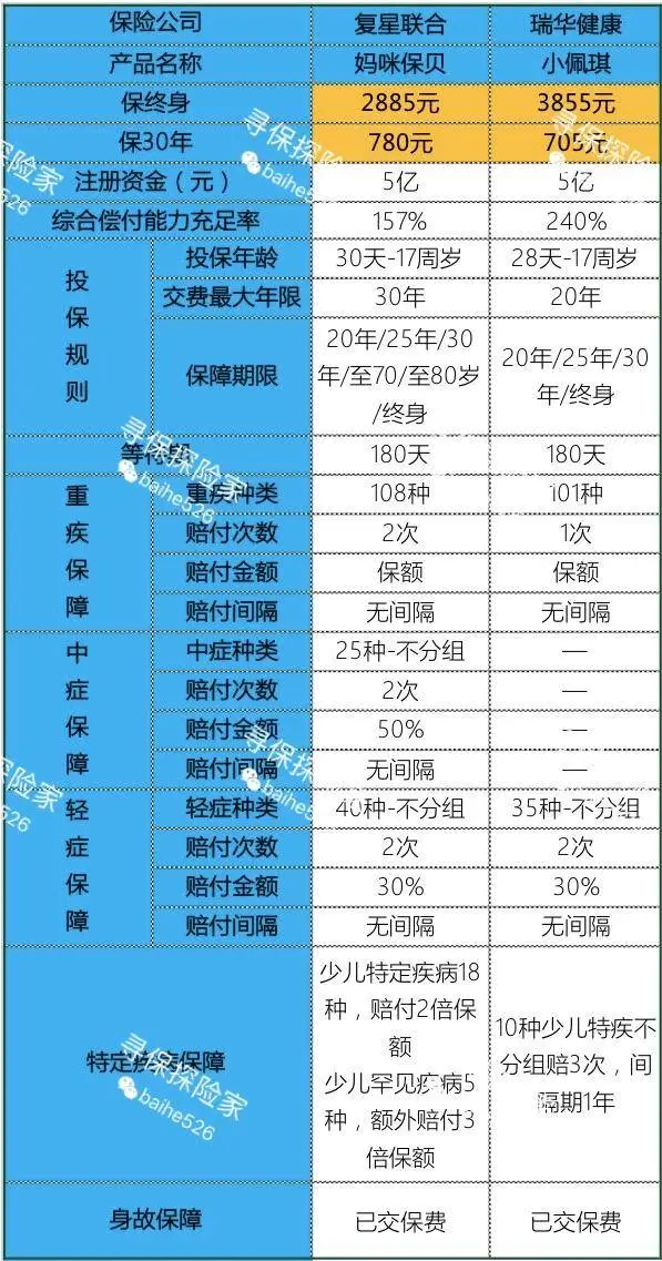 下面推荐2款少儿专属的消费型重疾,请看对比: