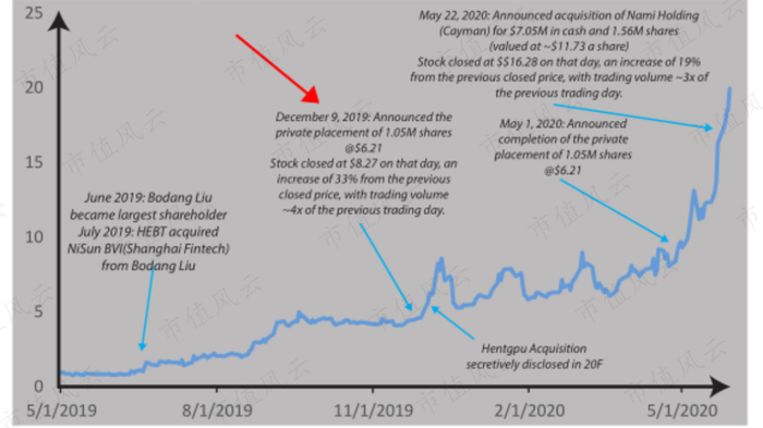 直至该公司宣布了一项收购后,刘伯党(Bodang Liu)成为其最大股东。在随后大约一年的时间里,股价从每股不到1美元涨到接近20美元,年回报率达到惊人的2000%。