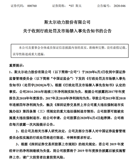 6月3日晚间,*ST斯太的一则公告,在宣告公司已身处退市边缘的同时,也揭开了公司曾长期被“德隆系”核心成员唐万新等人实际控制并操纵、业绩连续三年造假的真相。