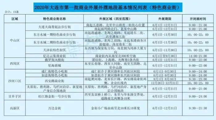 部分第一批商业外展外摆地段基础列表 ”大连发布“公众号 图