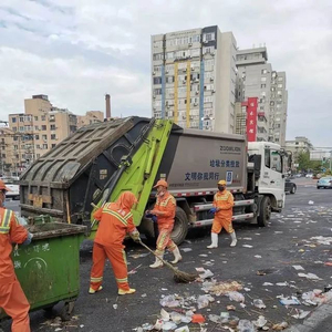 网传图片显示,涉事区域的街道上留有很多塑料袋、一次性纸碗等餐厨垃圾,多名环卫工人在现场清扫。