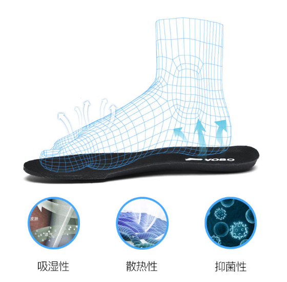 鞋垫表面采用原液活性面料纤维素源于天然原木,利用创新的原液活性防臭工艺,达到除臭效果。