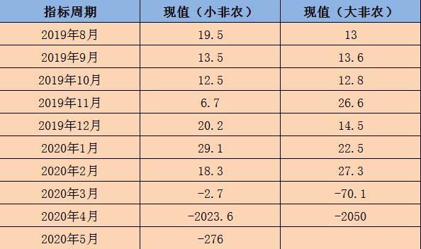 2019年8月份9月份10月份,大小非农现值数据都较为贴近,但在11月份的数据中两者出现较大分歧。小非农公布值新增6.7万人,前值12.5万人,明显利空美元美股。但是,周五公布的大非农数据却出现高达26.6万人的大幅新增就业,明显利多美元美股。如果按照ADP是大非农领先指标的逻辑交易,则会出现误判。大小非农数据不一致的局面不单单出现在2019年11月份,在今年的2月份同样差异巨大,小非农公布值新增18.3万人,大非农新增数值达到27.3万人,两者相差9万人之多。