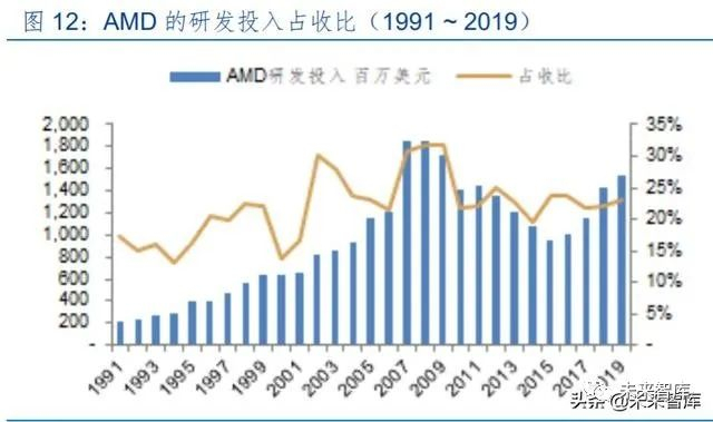 我们仍然以 AMD 作为一个参考来看,AMD 分别于 2008 年和 2015 年出售了自身晶圆制造 和封装测试业务模块,转型成为一家纯设计厂商,尽管在一段时间内受制于没有非常有效的晶圆 加工支持,AMD 在与 Intel 和 Nvidia 的竞争处于不利状况,但是其在资金层面的可支配性增加, 使得其在研发投入方面的扩张,逐步在 AI 和显卡领域获得了市场的认可。