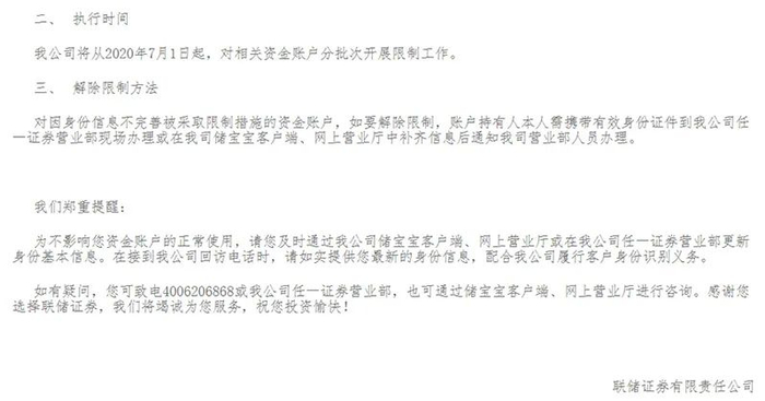 近日,联储证券、东吴证券、东北证券等券商纷纷发布对信息不完善的账户采取限制措施的公告。