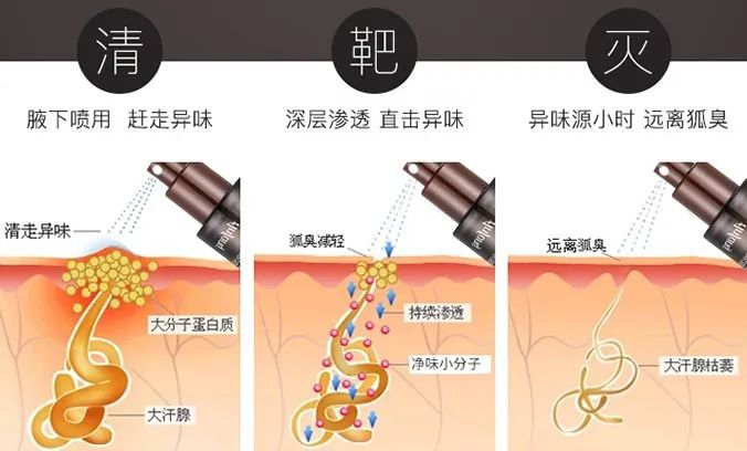 能使狐臭净快速渗透层层皮肤,直达汗腺。