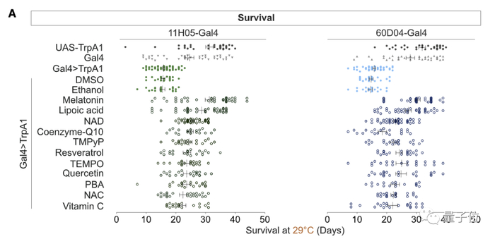 需要说明的是,这些补充剂并不能延长对照组正常果蝇的寿命。