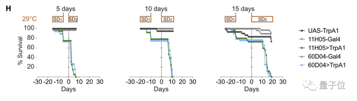 实验过程,这些果蝇被安置在29℃的环境中,这样热敏蛋白就能诱导神经元保持活跃,阻止果蝇入睡。