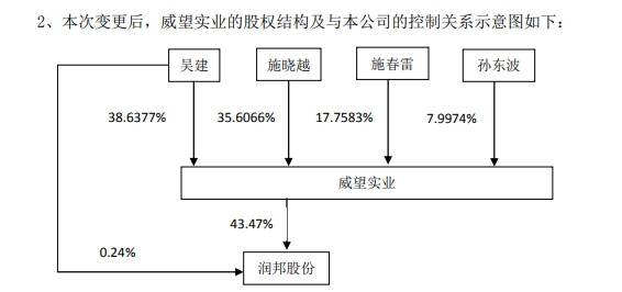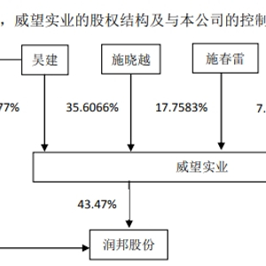 公开资料显示,南通威望实业有限公司为A股上市江苏润邦重工股份有限公司(下称“润邦股份”)控股股东。案件信息显示,2017年1月17日,沙某将自己持有股权转让给施春雷用以折抵赌债。当日,润邦股份公告了威望实业股东沙明军股权转让事宜。公告显示,2017年1月17日,润邦股份收到公司控股股东“威望实业”股权结构变更通知,威望实业股东沙明军将其持有威望实业的670万元股权全部转让给吴建、施晓越、施春雷以及孙东波,其中施春雷通过威望实业间接持有了润邦股份17.7583%股份。