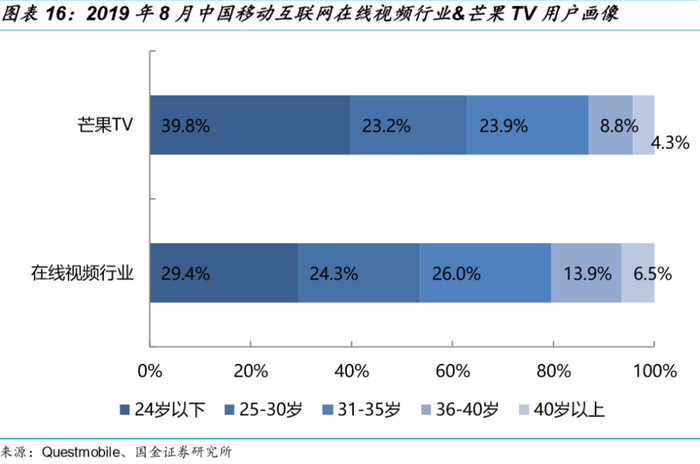 延续金鹰卡通的观众基础与独家内容,或为芒果TV的少儿内容带来竞争优势。①收视率:金鹰卡通少儿频道收视率处于各大少儿频道之首,CSM59城收视率显示,2020年4月24日全天收视率情况,金鹰卡通排行第13位,收视率超过其他少儿频道及卫视频道。良好的观众基础可以为芒果TV带来竞争优势。②独家内容:相比于少儿内容仅有动画的爱优腾平台,金鹰卡通还有超过10部自制亲子综艺。亲子综艺节目的受众囊括儿童和有孩子的家长。《疯狂的麦咭》是金鹰卡通2014年推出的大型明星亲子益智历险闯关真人秀季播节目,是目前金鹰卡通季数最多的季播综艺节目,目前第七季已经开播,第六季拥有7395.2万的播放量。用户画像显示,除了19岁以下人群以外,30-39岁人群占比为55.82%,家庭用户基数同样深厚。