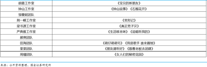 ②综艺团队:湖南卫视和芒果TV共有32个综艺团队,自制综艺占比高达80.36%;